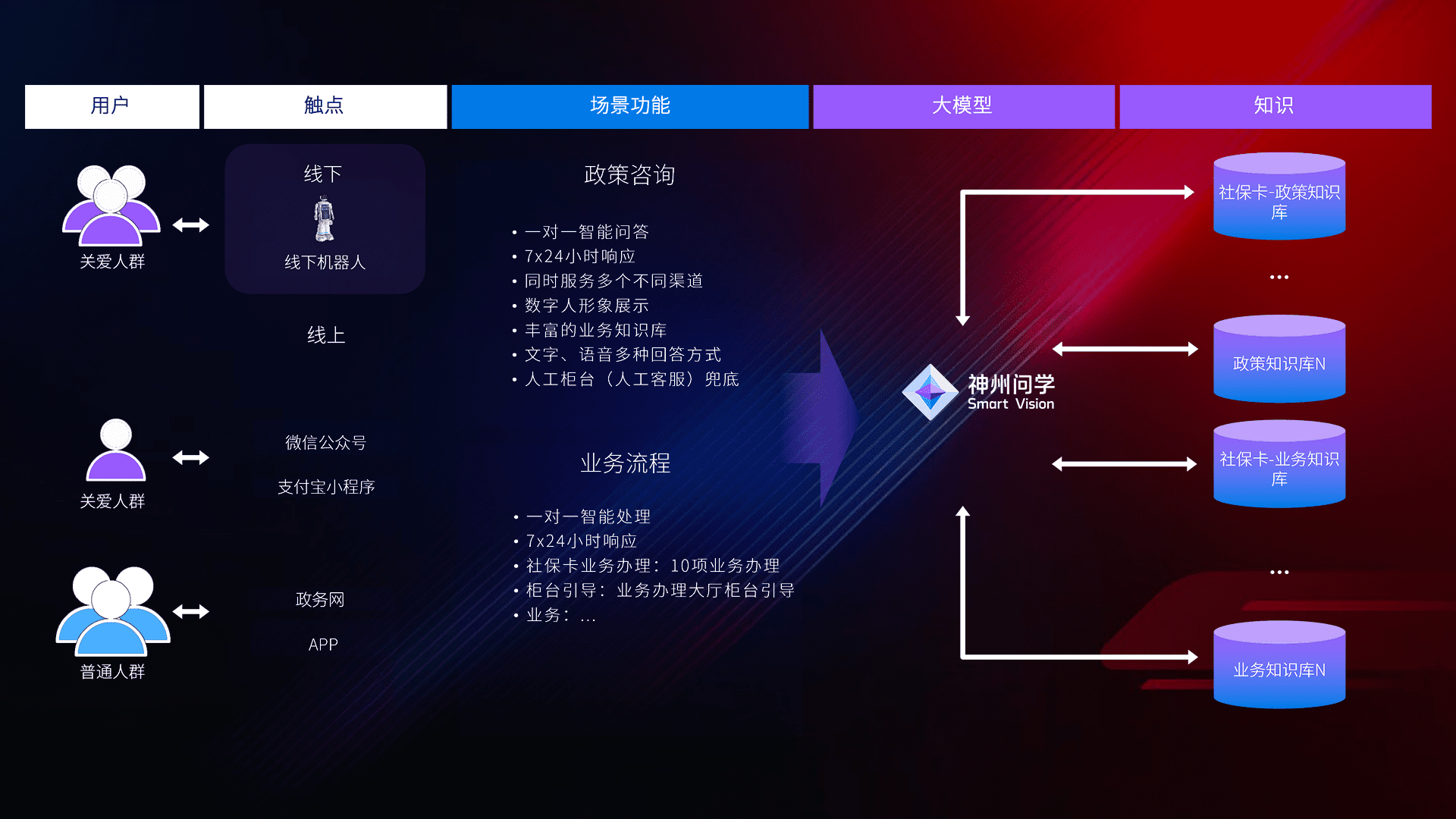 在服务大厅部署客服机器人,,在线上应用和小程序配置客服数字人,,724小时为群众解答常规问题,,客服机器人无法处理的,,,,转现场人工处理。。